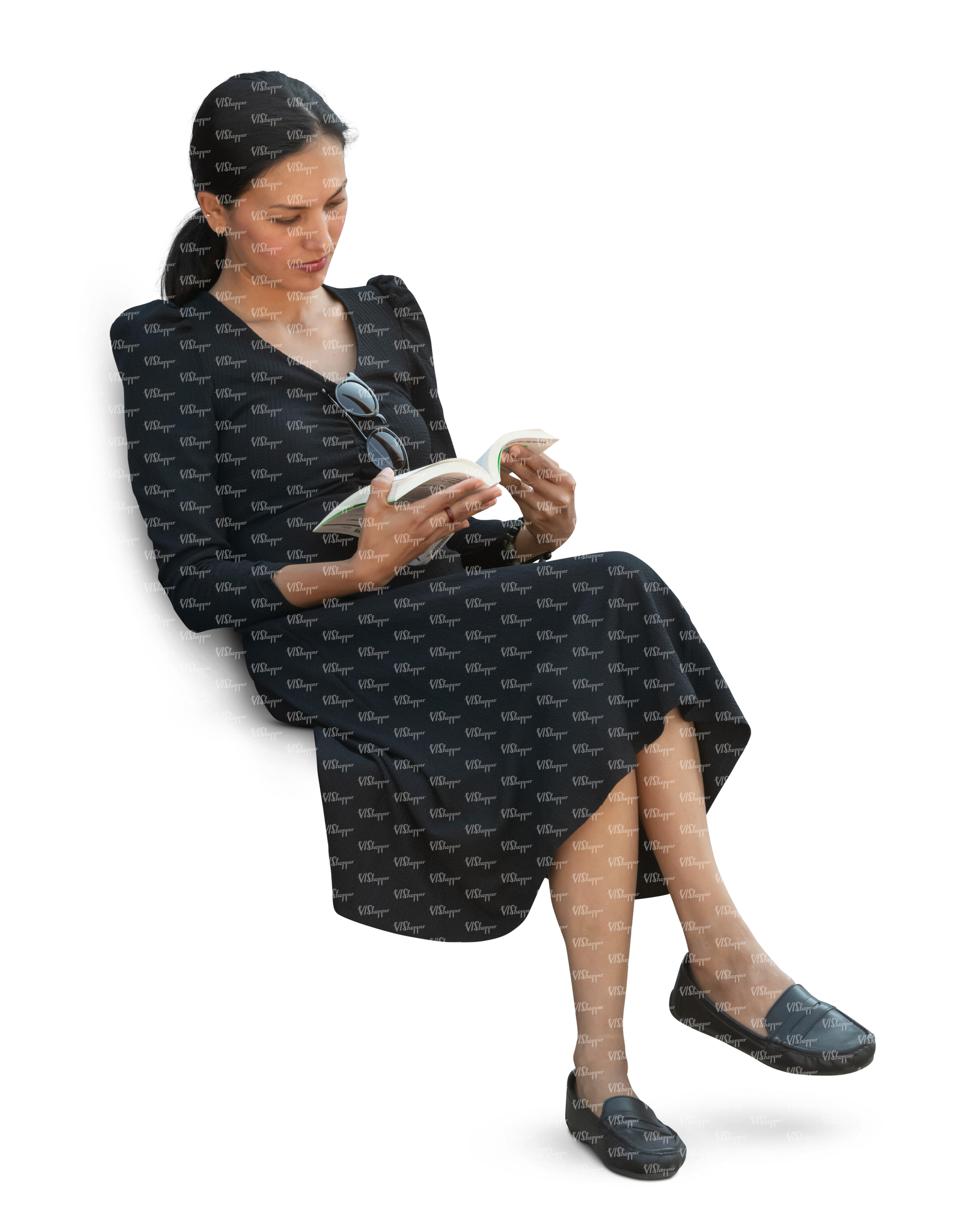 • cut out woman sitting and reading seen from above