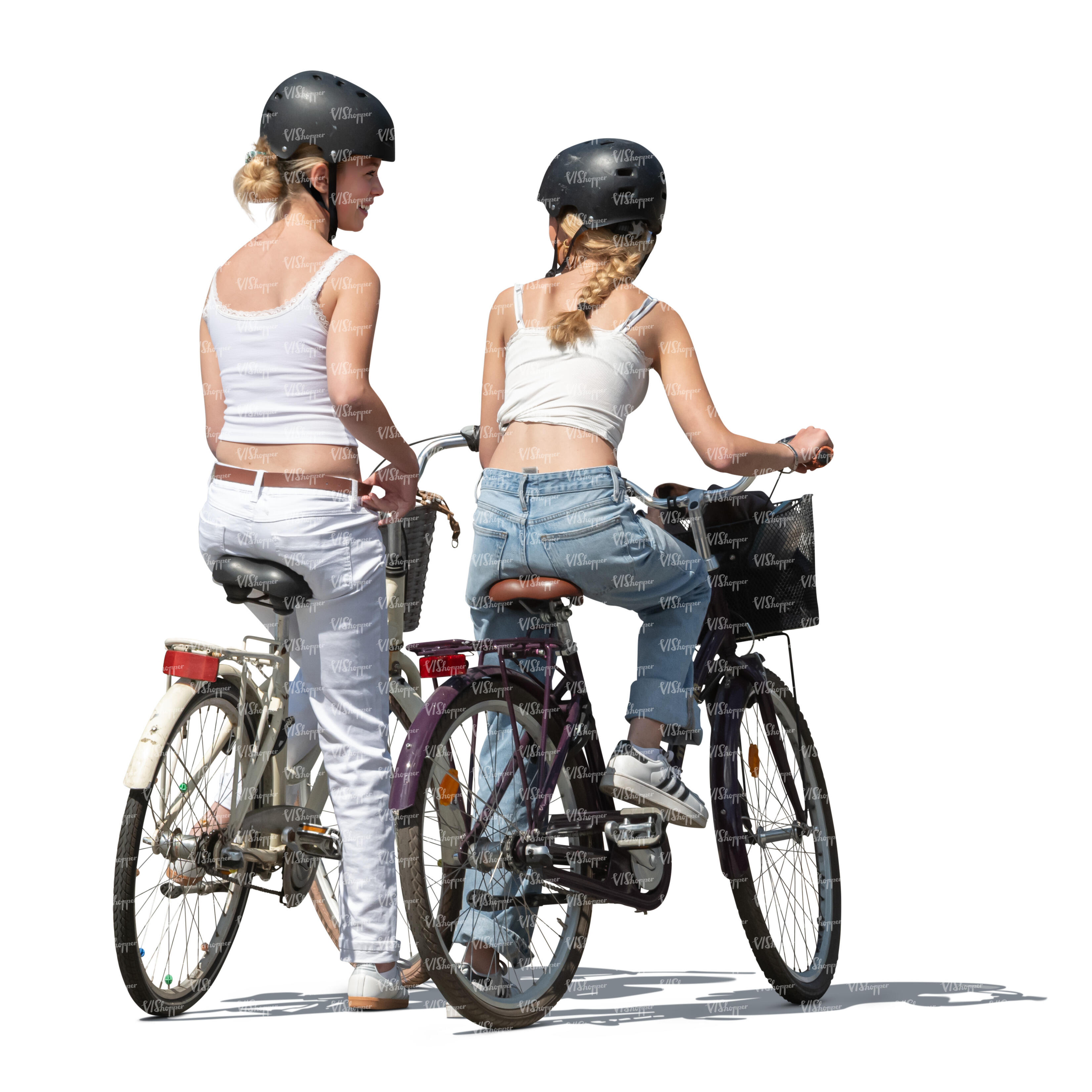 two cut out teenage girls riding bikes