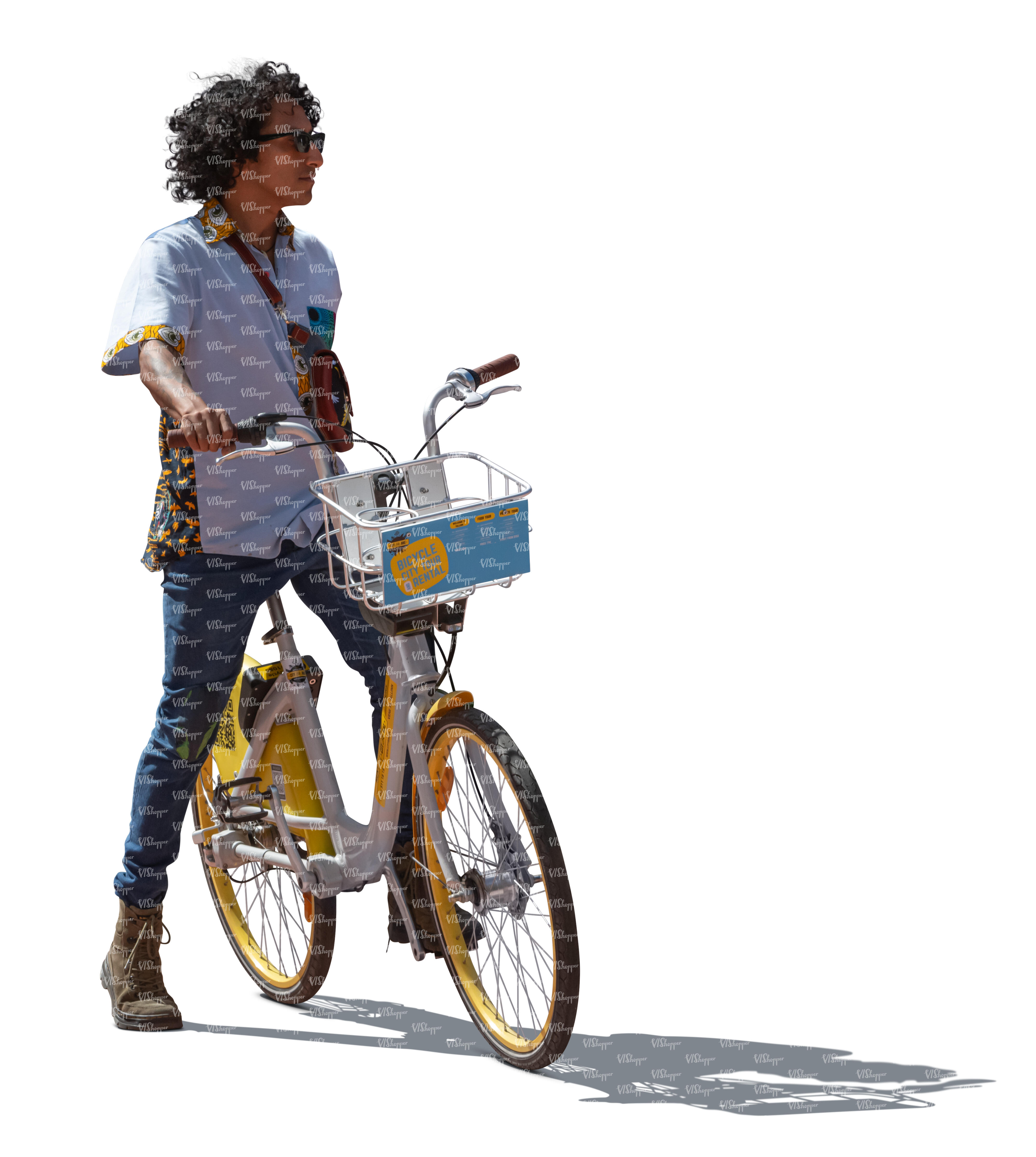 • backlit latino man with a bike standing