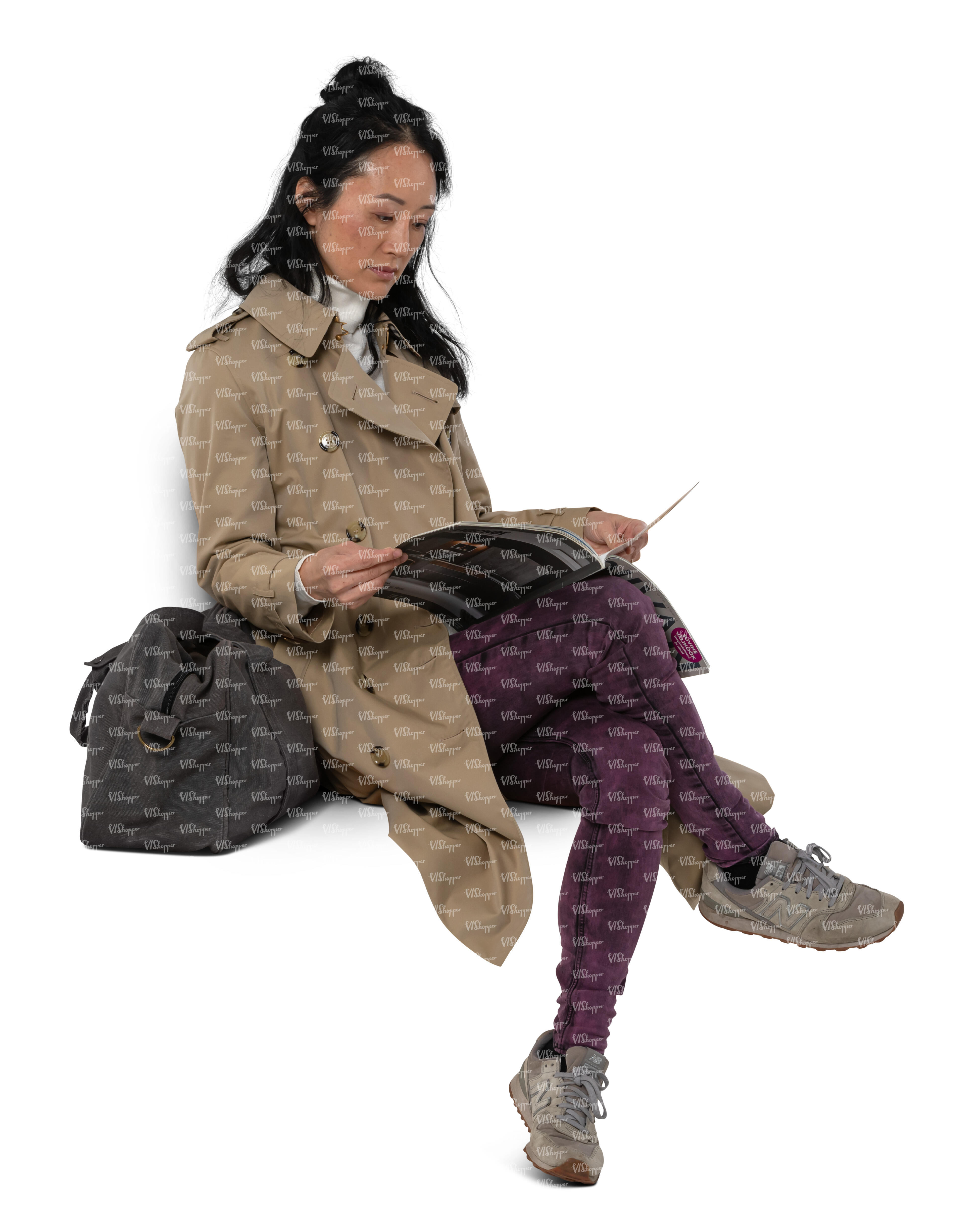 cut out asian woman sitting in autumn