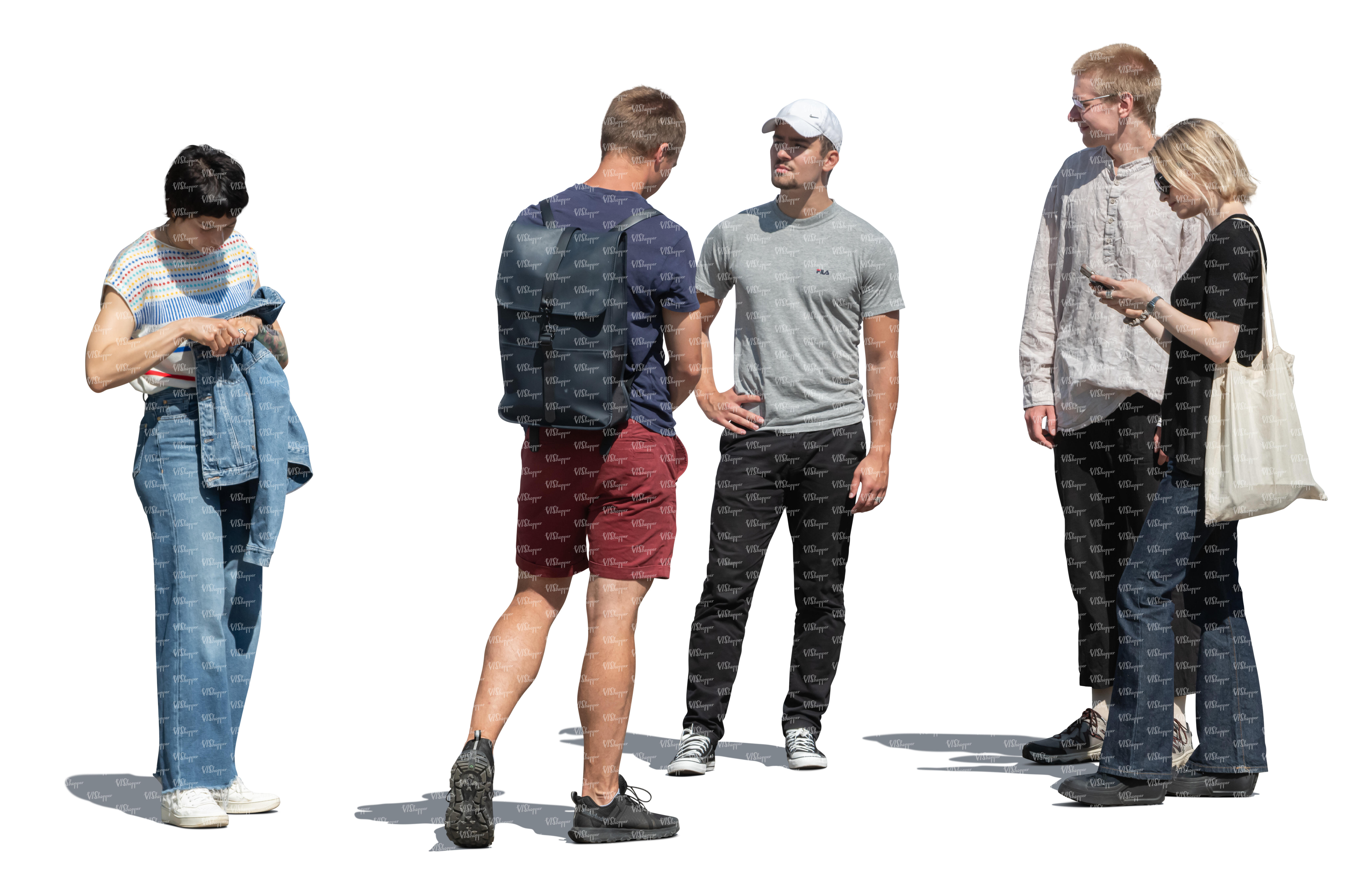 • cut out multinational group of friends walking