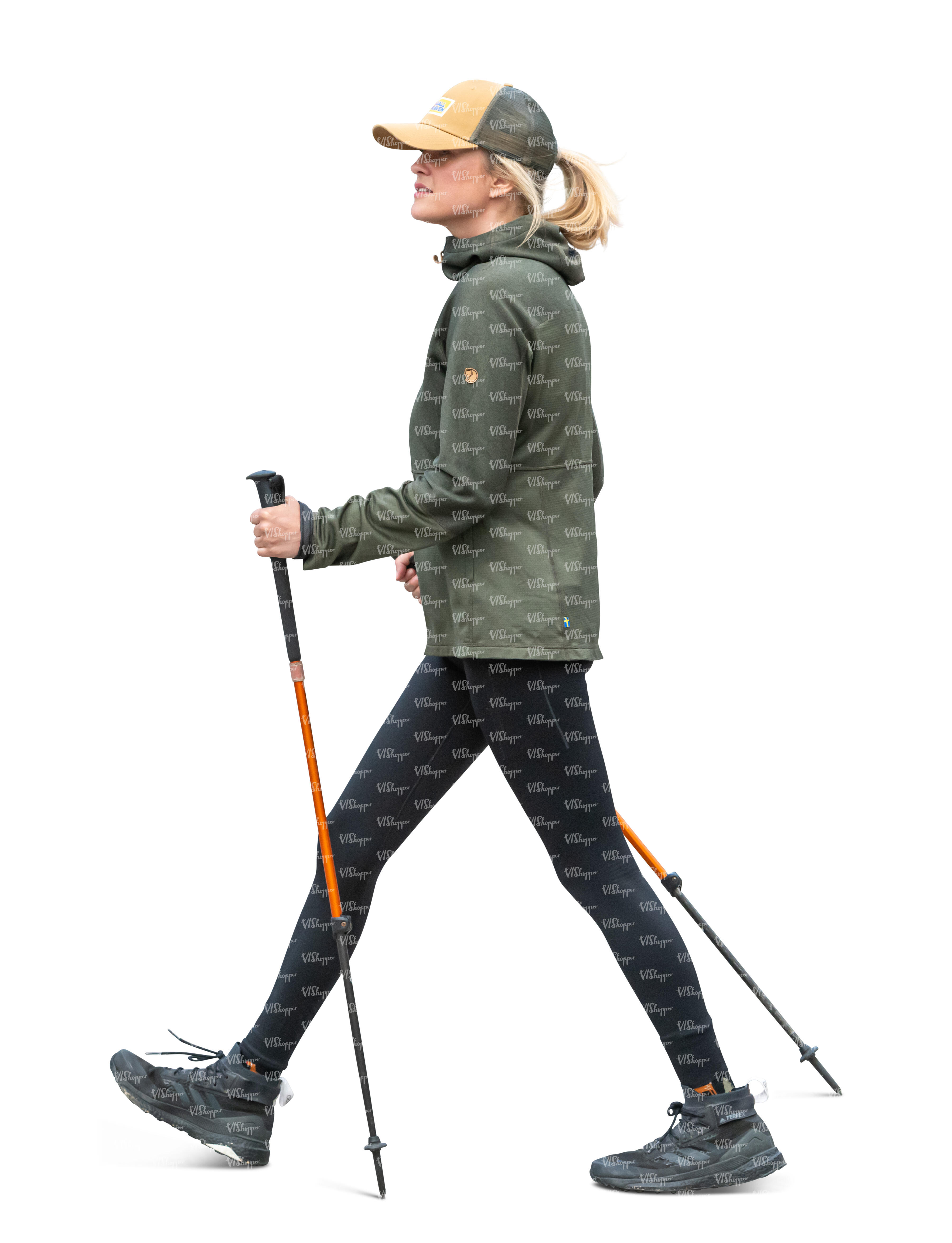 cut out woman with trekking poles walking