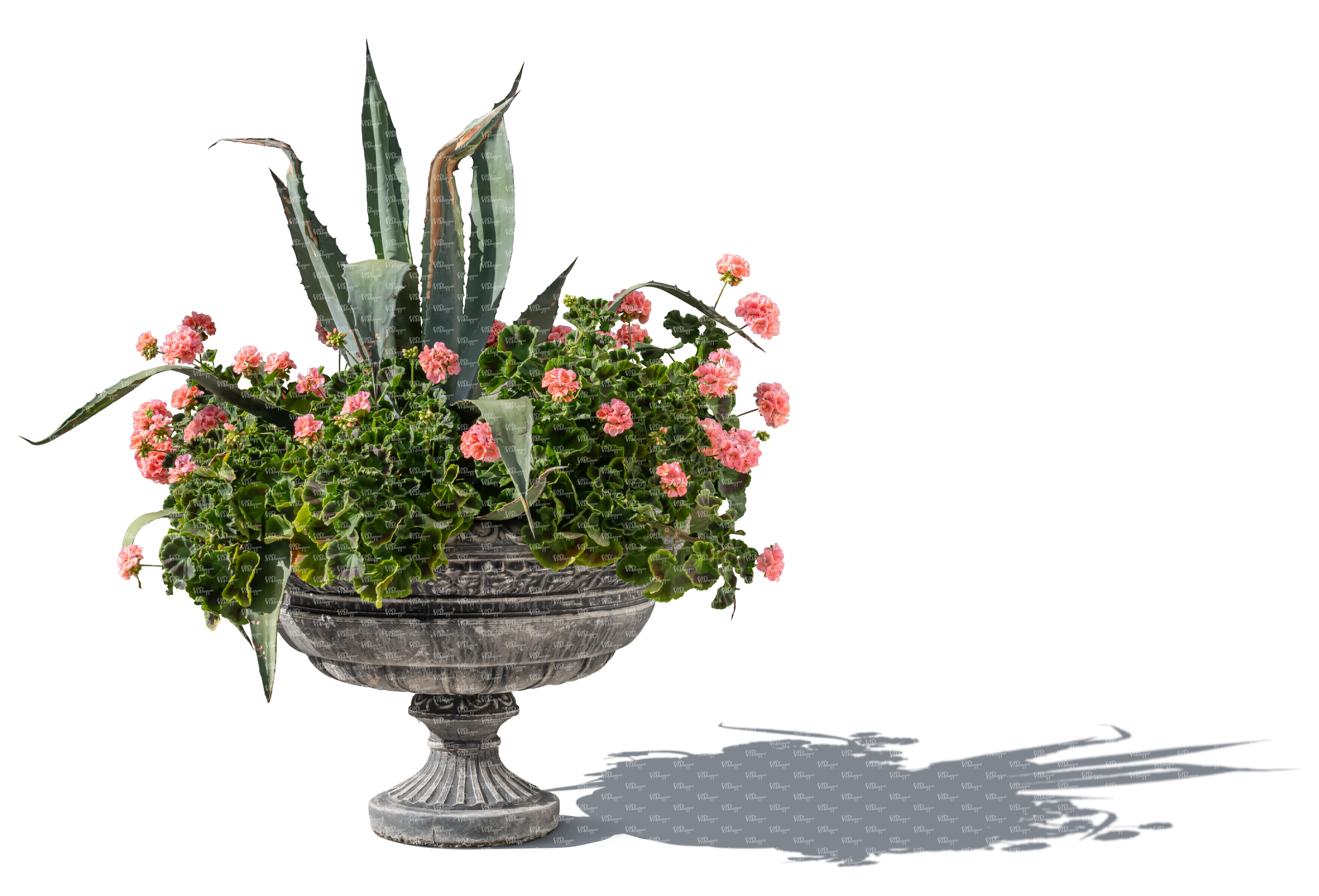 • foreground in sunlight with benches and flowerbeds on separate layers
