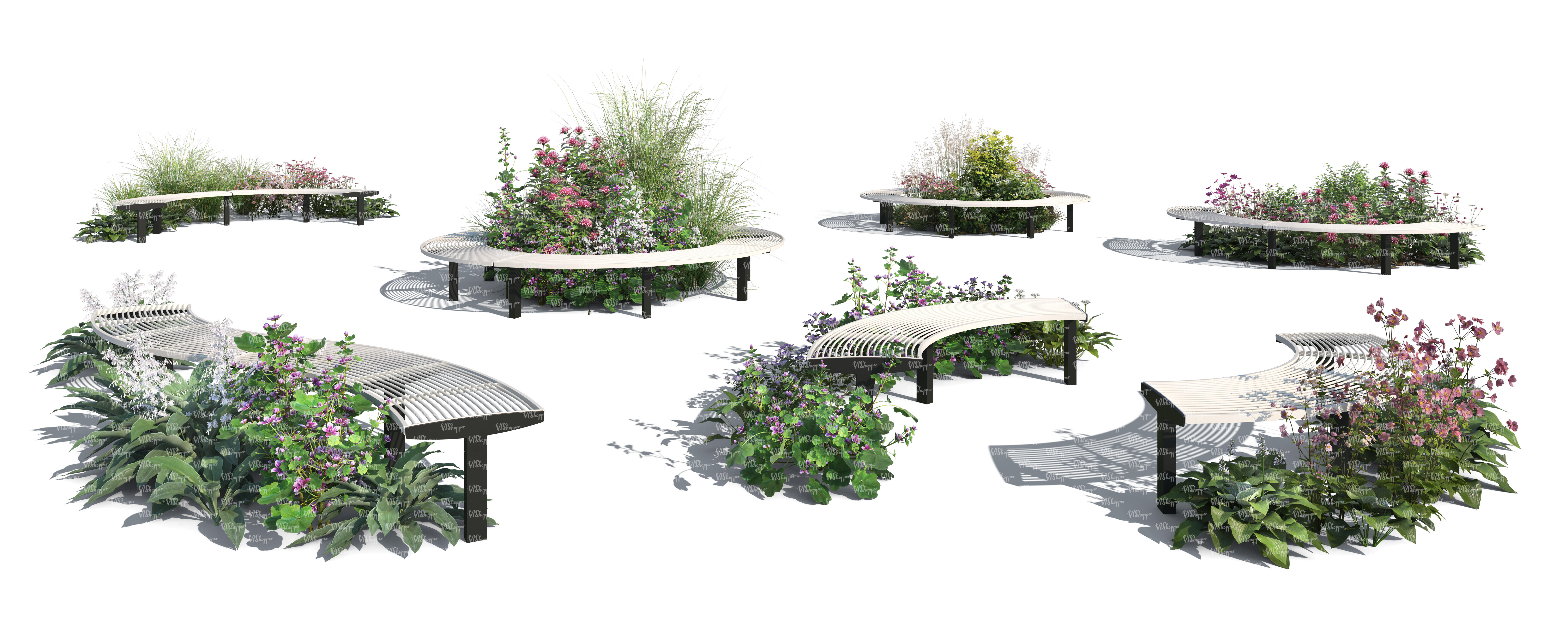 • foreground in sunlight with benches and flowerbeds on separate layers