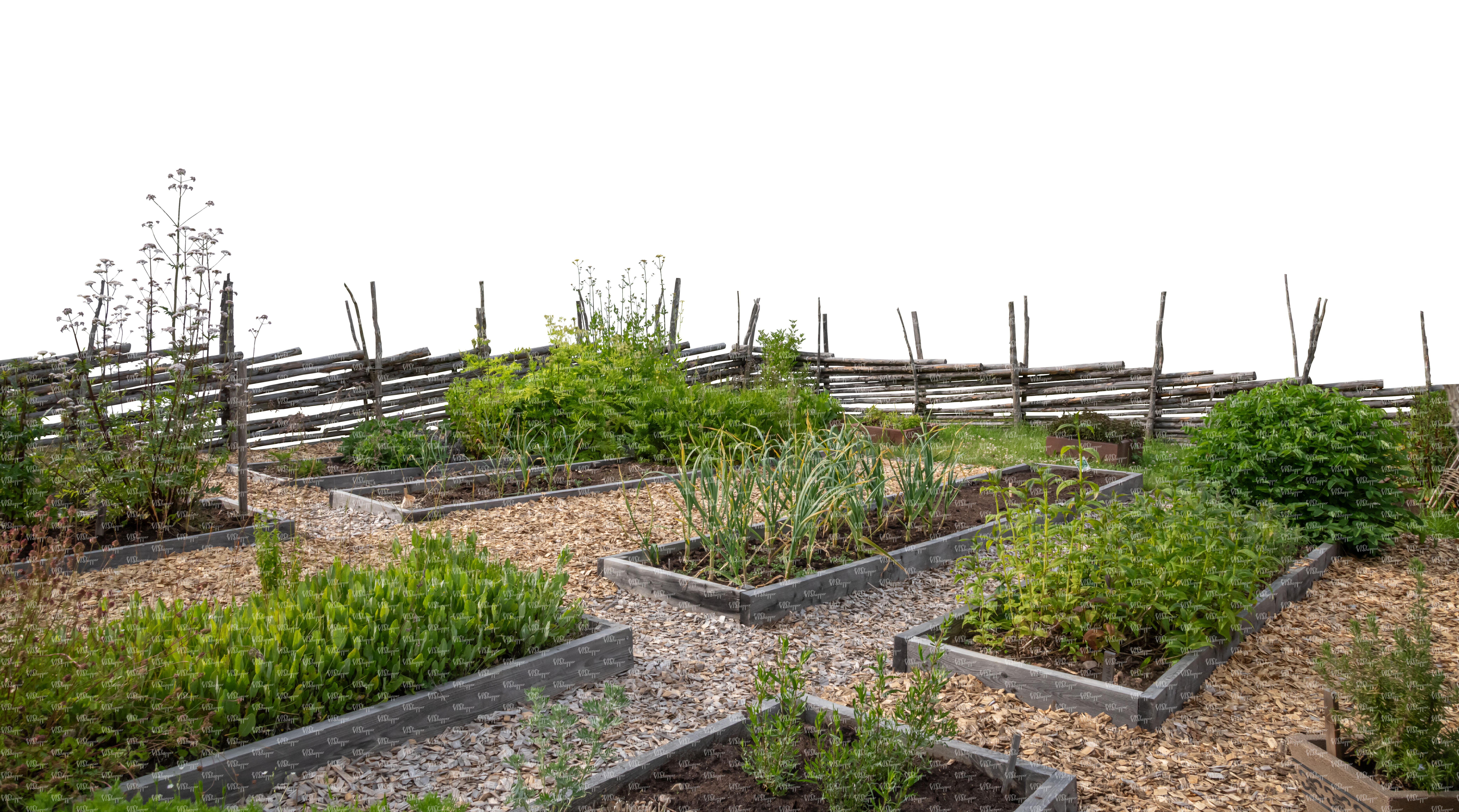 • foreground in sunlight with benches and flowerbeds on separate layers