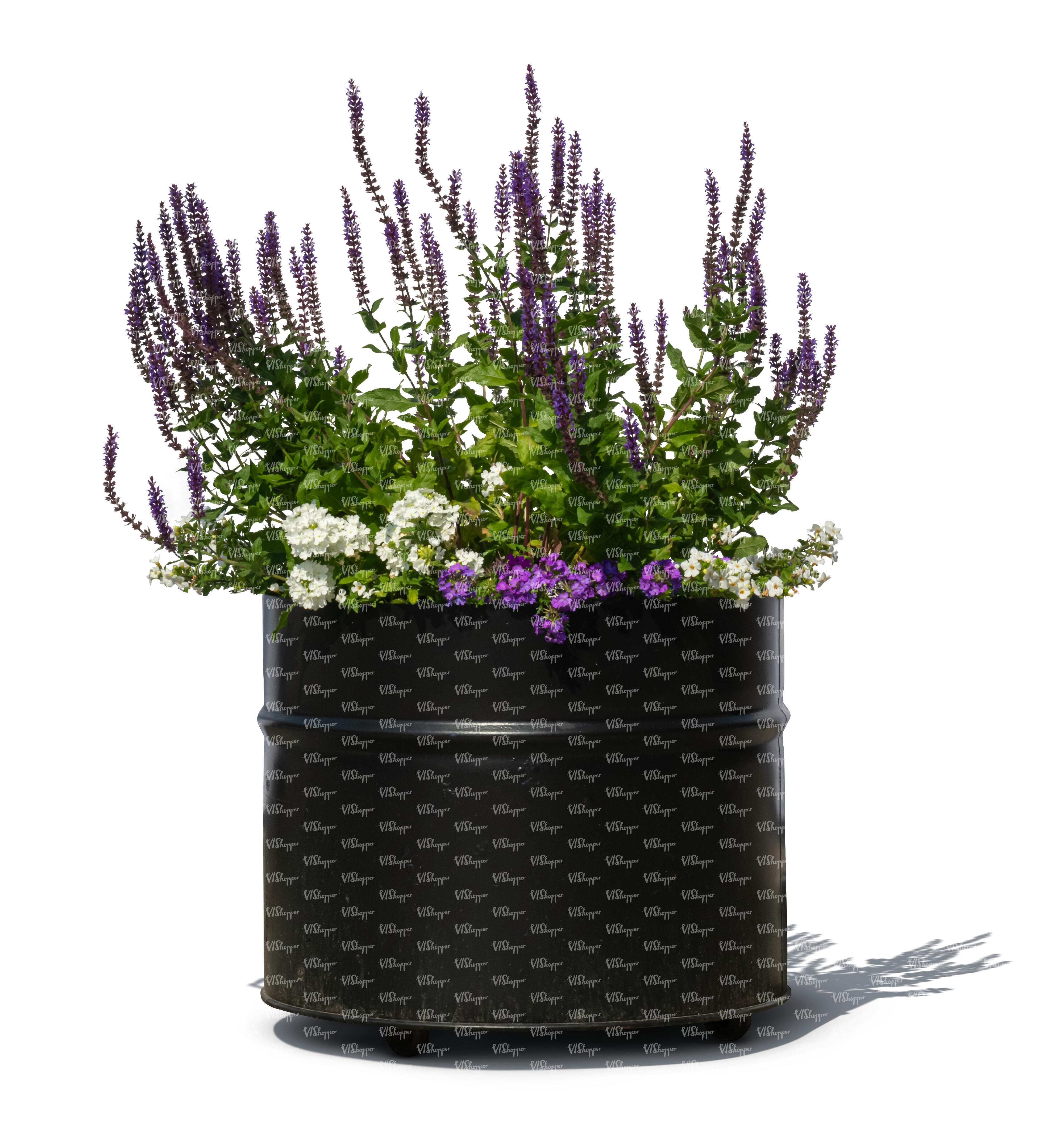 cut out blooming flowers in a black round planter