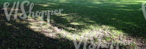 • short grass ground with large tree shadows